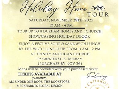 For more information or to make a purchase by e-transfer contact durhamholidaytour@gmail.com