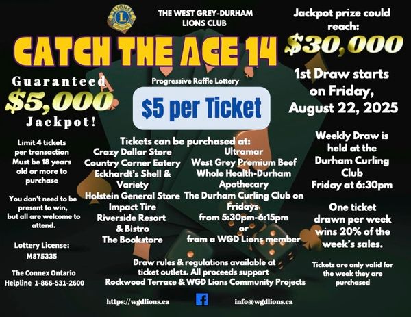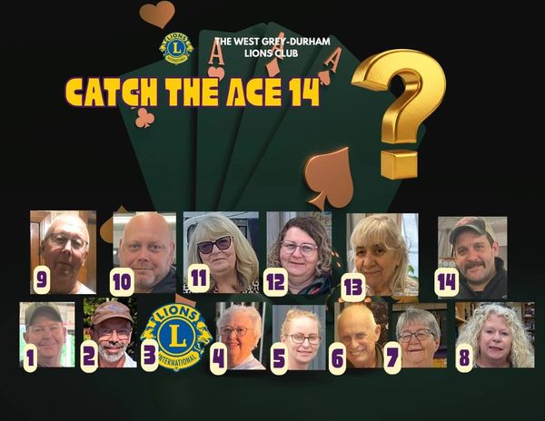 THE WEST GREY DURHAM LIONS CLUB CATCH THE ACE 14